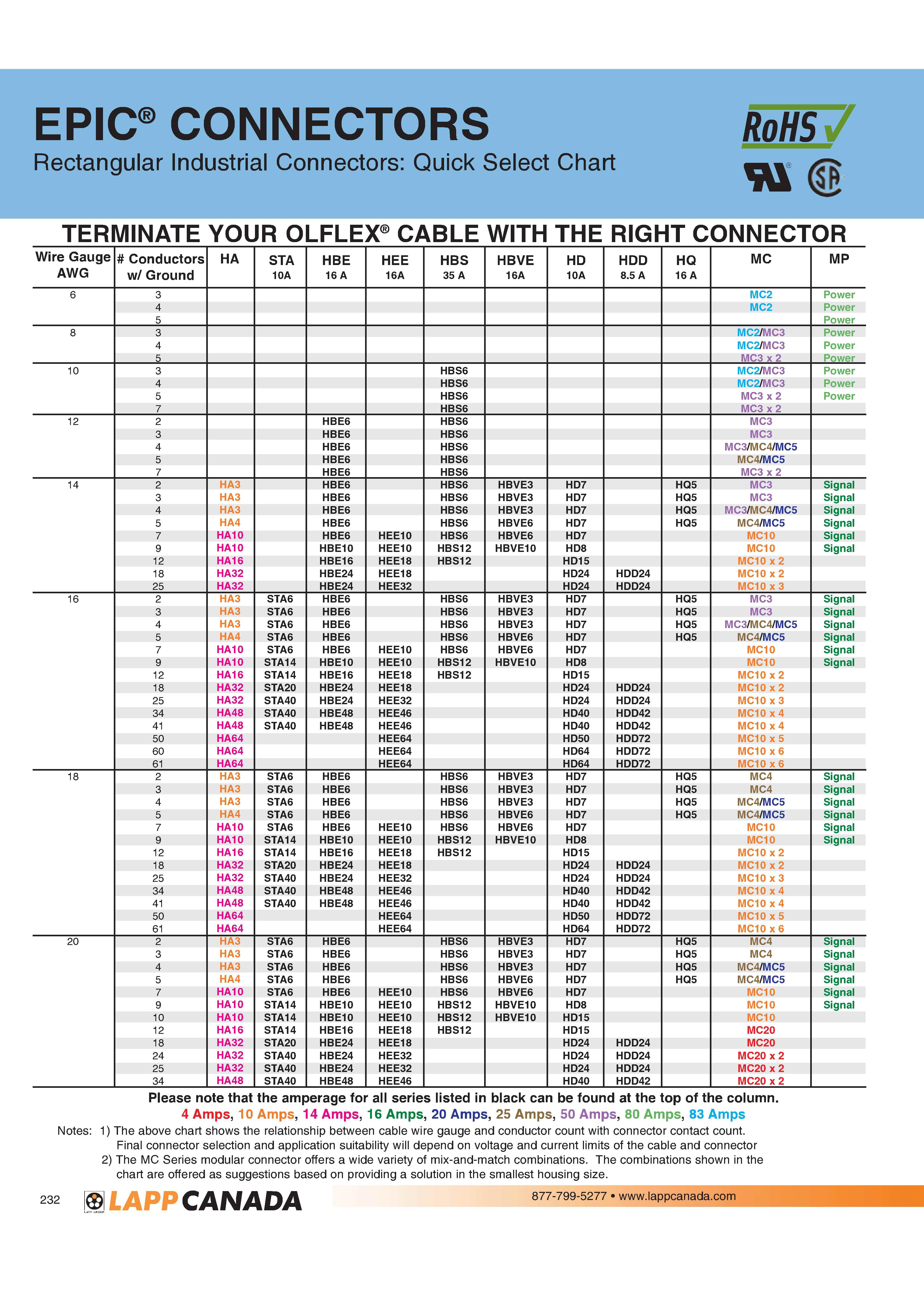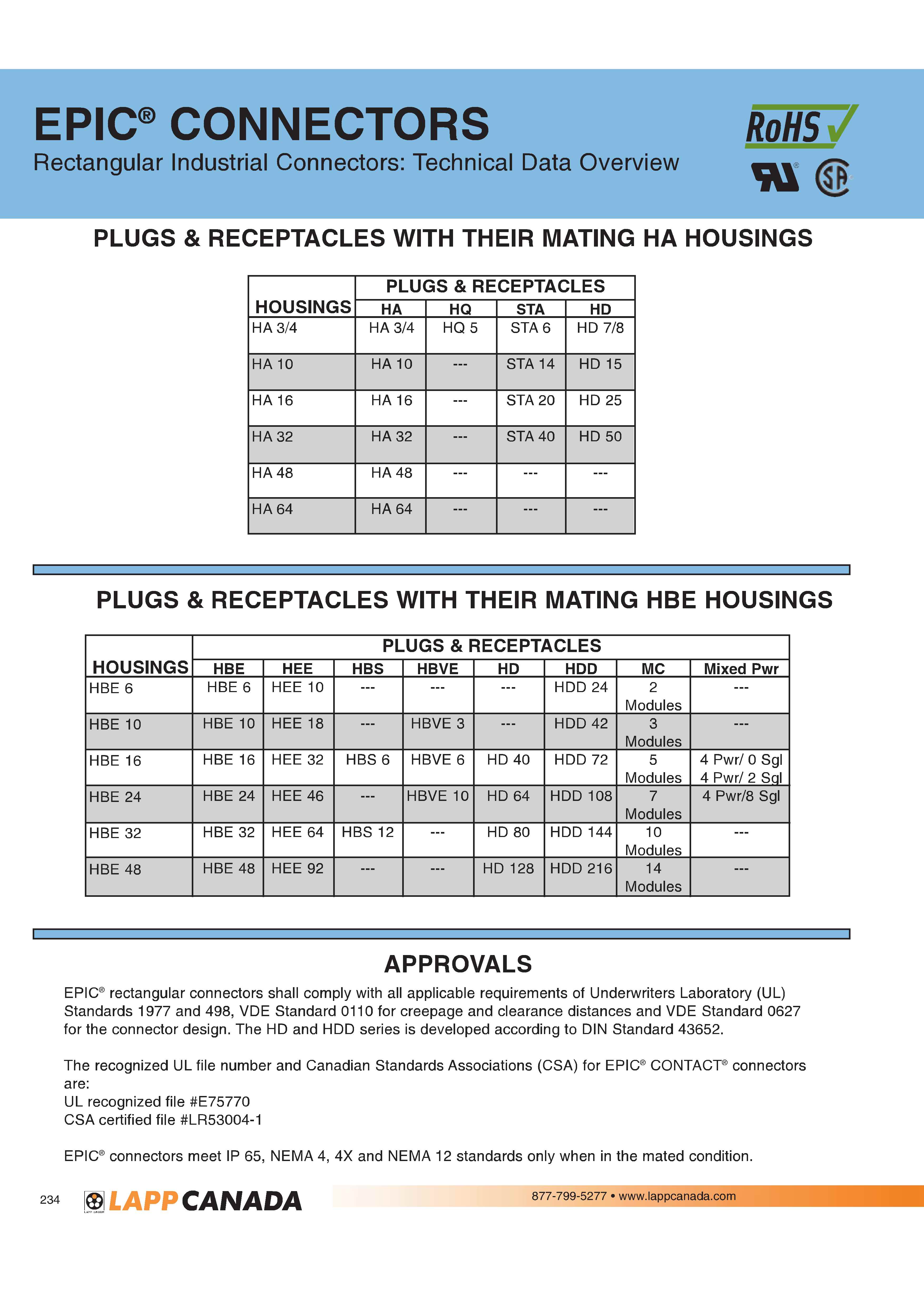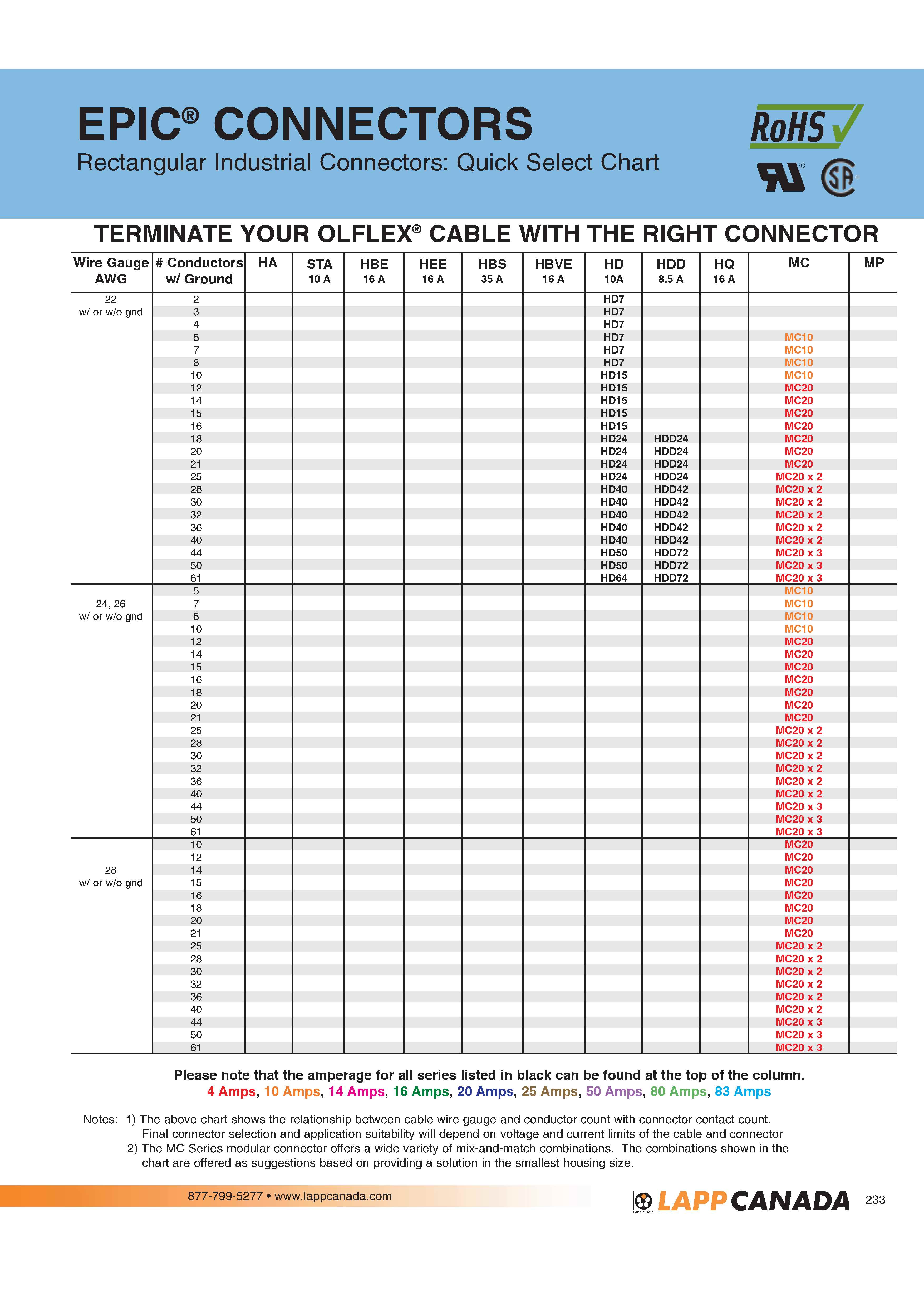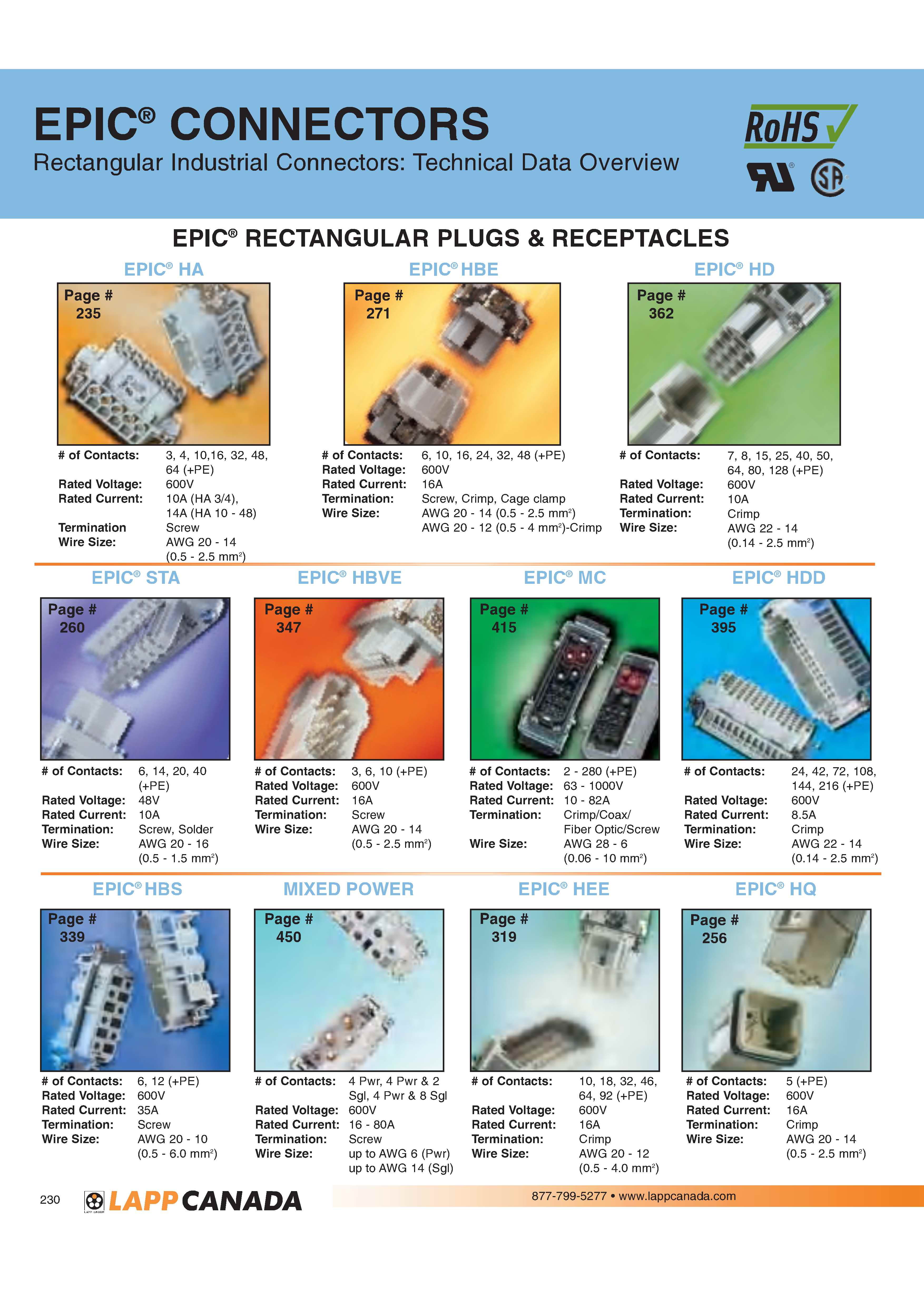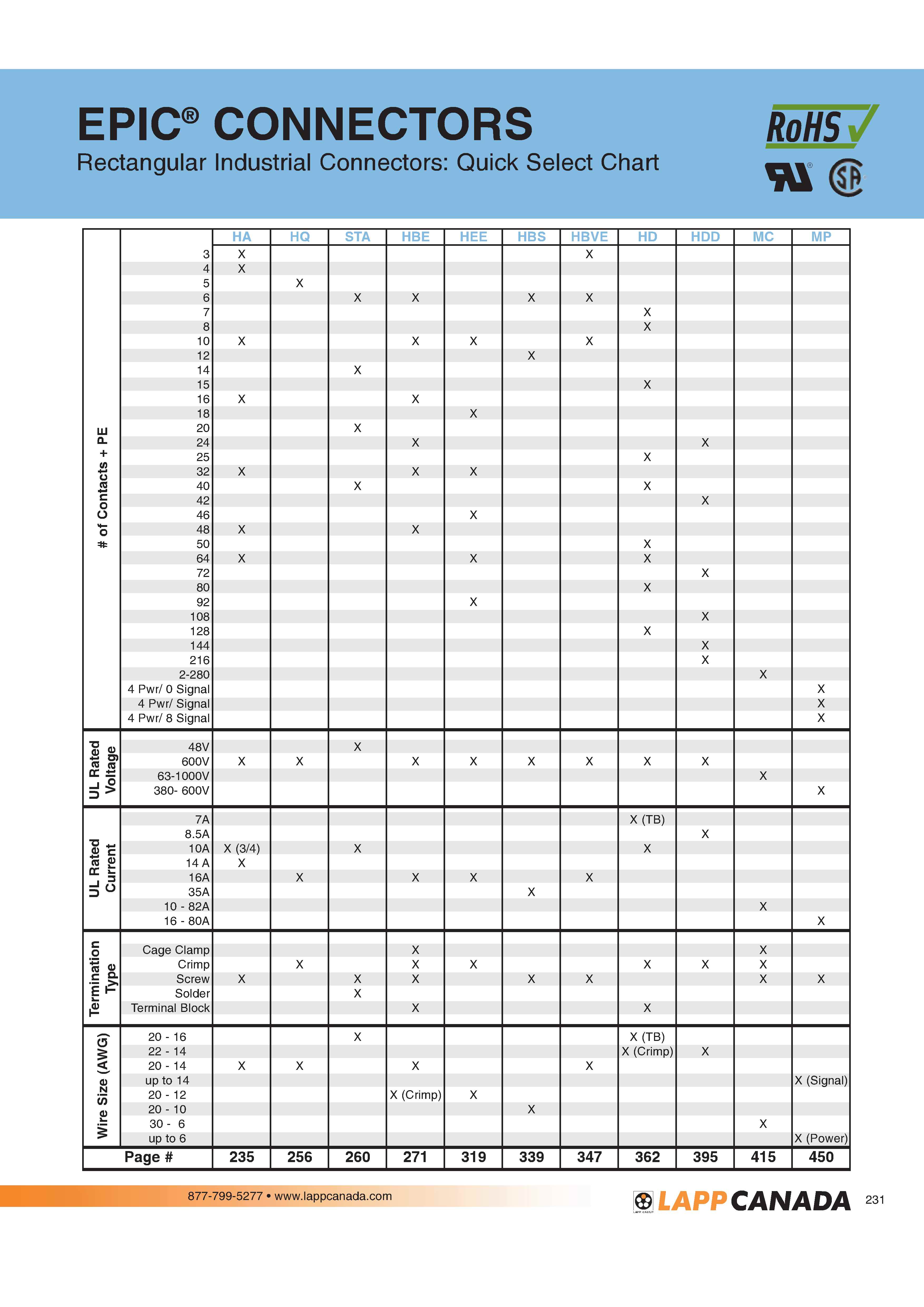 Lapp offers 11 series of rectangular connectors. The rectangular overview section will help determine the series which