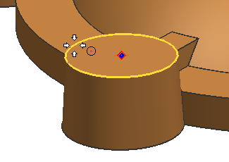 In the graphics window, click the edge of the cone to select the arc center.