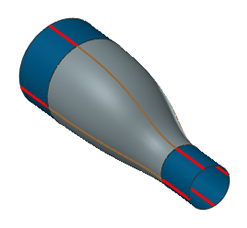 To define start and end points for the straight curve at the bottom of the part, select the curve ends at